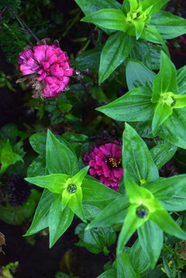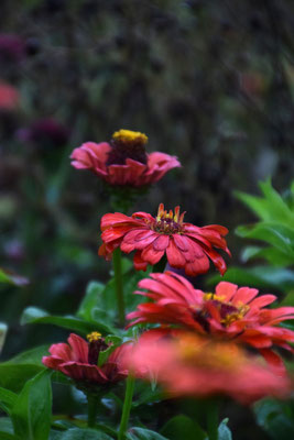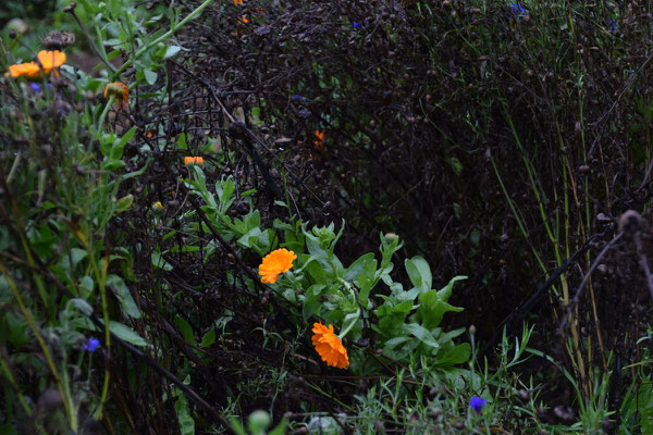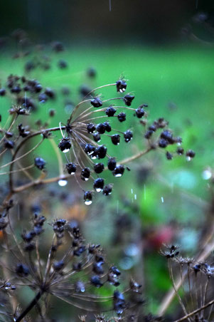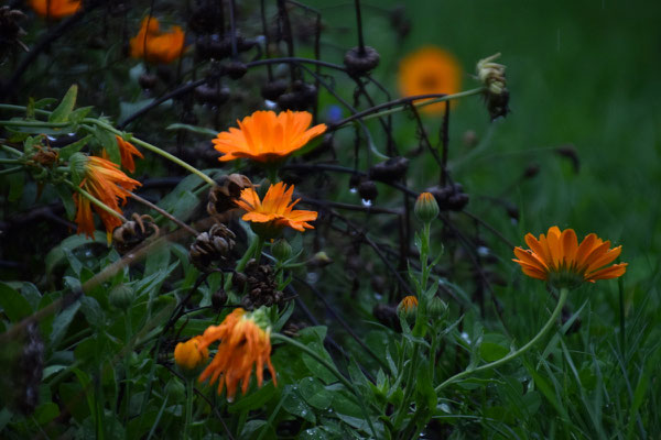 Ich liebe das Leben hier sehr: Die Unmengen Früchte, die uns dieser Sommer geschenkt hat, die herbstlichen Morgen seit einiger Zeit, die Sträußchen aus Zinnien, Ringelblumen, Eisenkraut, Bischofskraut, Hasenschwanzgras, im Sommer in den hängenden Vasen in den Weiden, jetzt hier in der Wohnung auf dem Esstisch. Manches blüht immer noch unermüdlich und gestern war eine junge Frau mit ihrer Familie hier, die Gemüse geerntet hat und noch einen wunderbaren Herbststrauß mit nach Hause nehmen konnte. Sie war ganz beseelt, so schön. Ich liebe es, wenn die Katzen irgendwann im späten Frühling anfangen, in ihren Mulden im hohen Gras rumzuliegen. Bruno mag den Platz unter dem Lavendelbusch so gern.