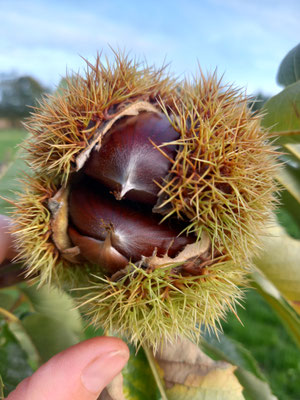 Unser Quittenbäumchen hat ganz gut getragen und das noch sehr junge Esskastanien-Bäumchen hat eine einzige wertvolle, stachelige Kugel durch den Sommer gebracht, mit 2 Kastanien darin, jeweils knapp über 20g. Auch dank unserem Baumexperten Jegge wird unser Garten immer essbarer, das ist ein schönes Gefühl.